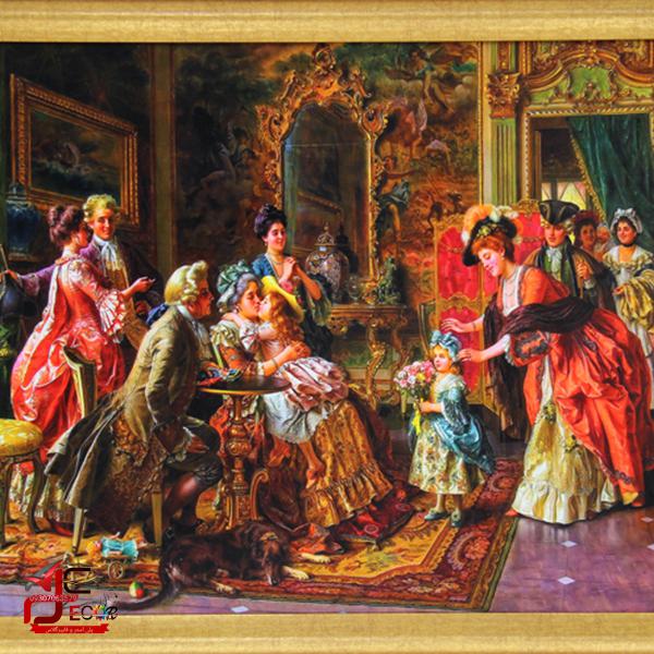 تابلو مخمل فرانسوی طرح بوسه مادربزرگ | تابلو مخمل سلطنتی