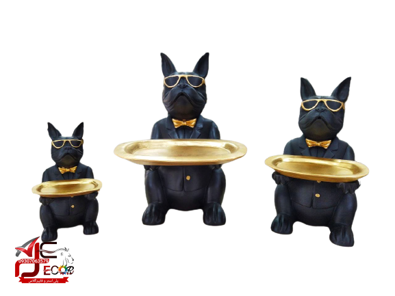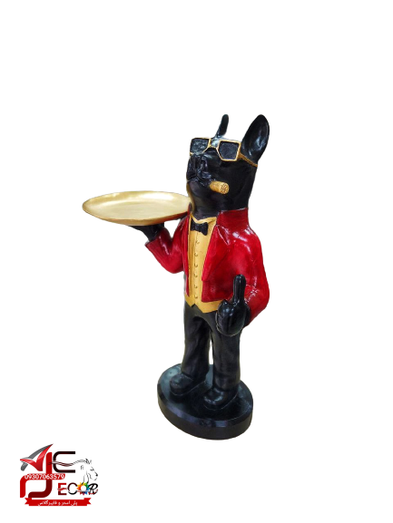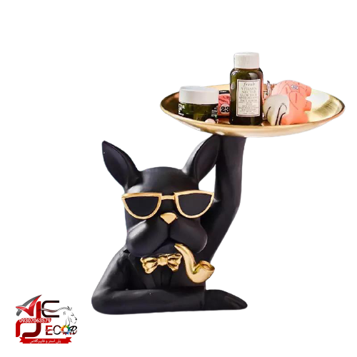 دکوری سگ نشسته با سینی پذیرایی رومیزی